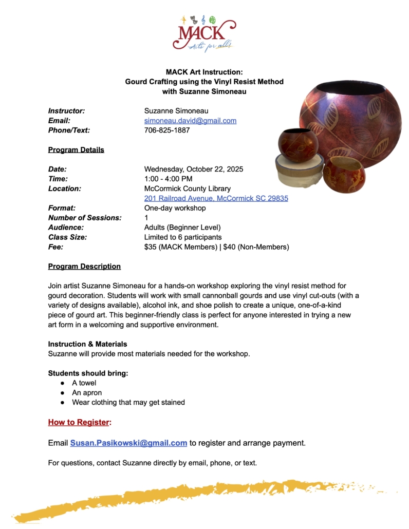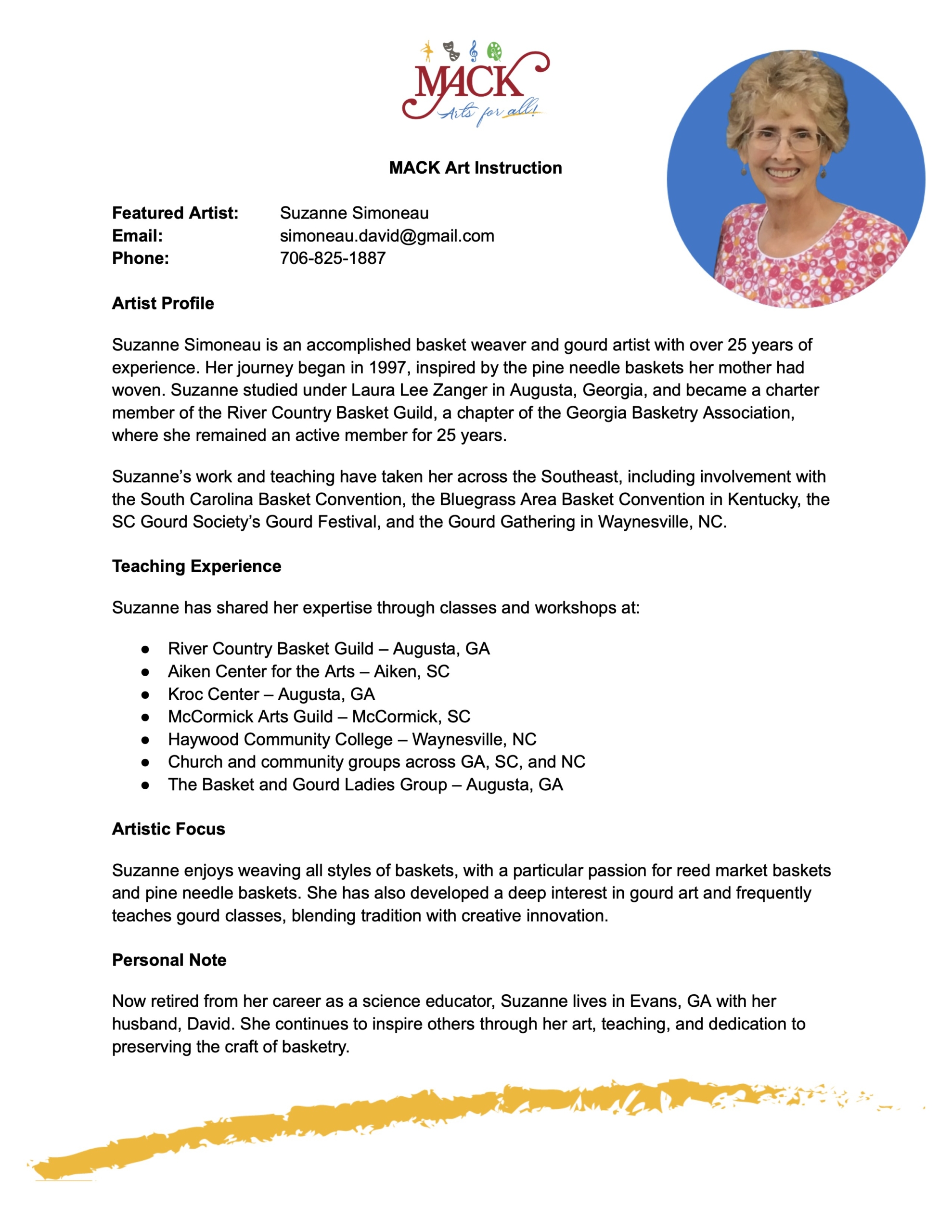 Please see the following information about our next Art Instruction opportunity. Email Susan.Pasikowski@gmail.com for registration and payment details.